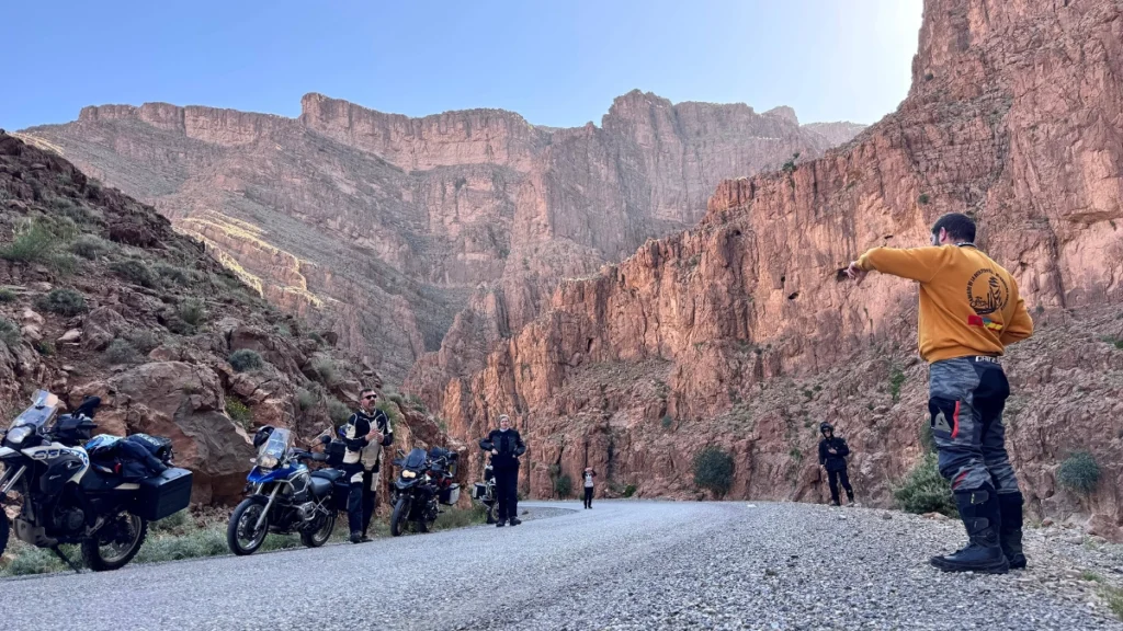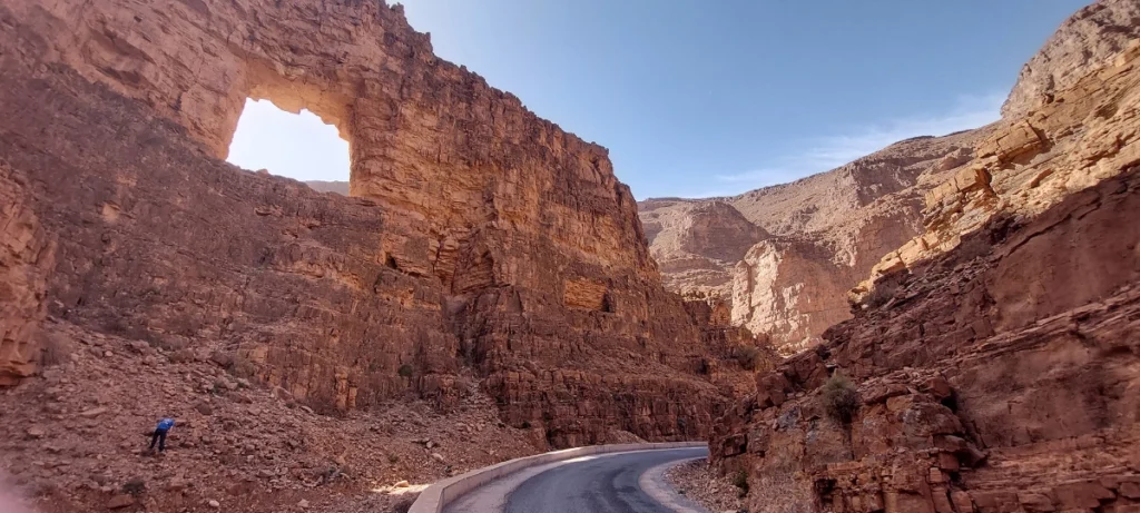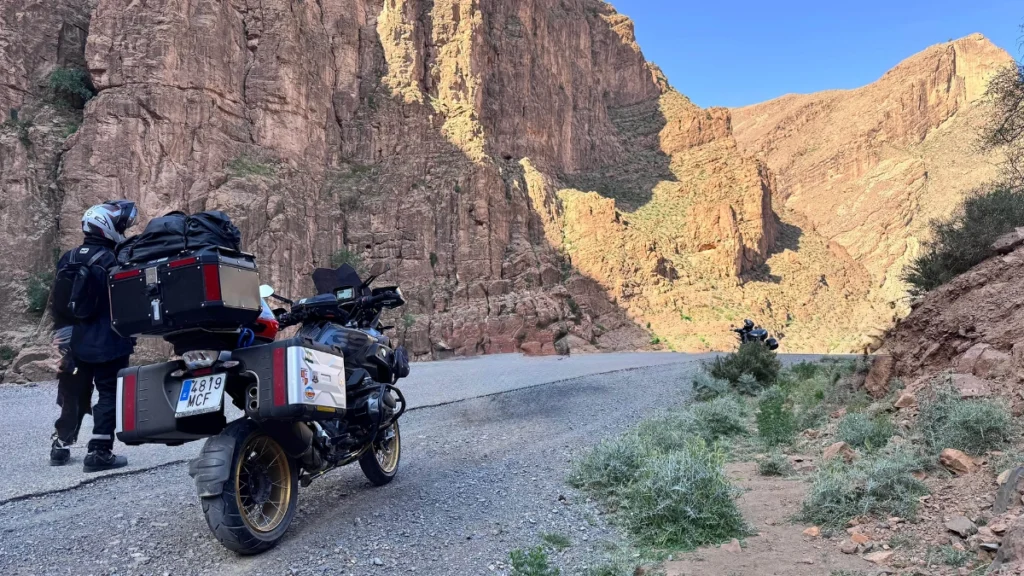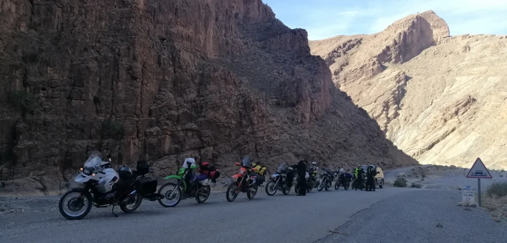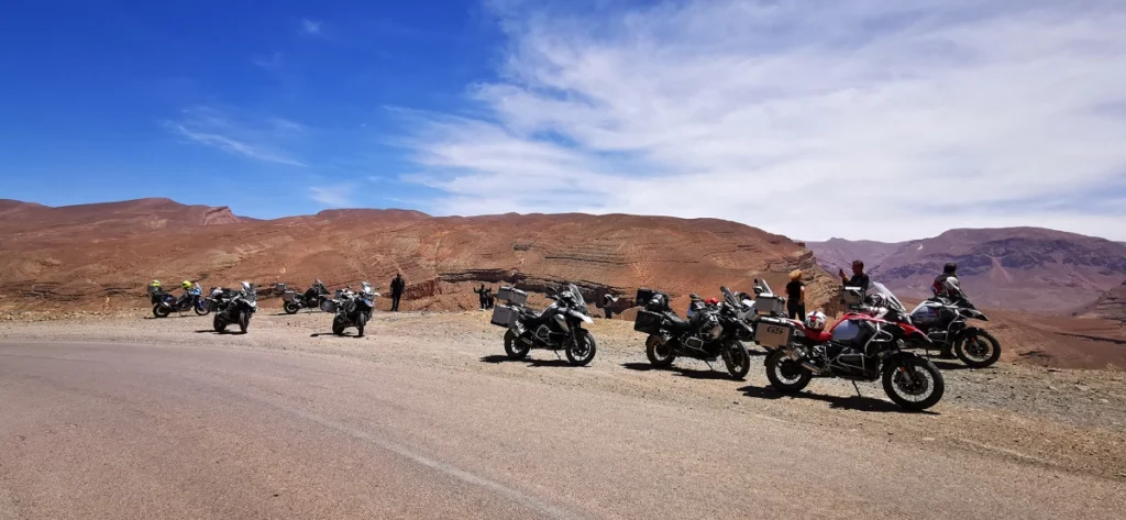 Empezaremos rodando por carreteras secundarias hasta enlazar  con la nacional 9, carretera con grandes rectas en su inicio pero que poco a poco va convirtiéndose en una carretera serpenteante y que va ganando altura hasta llegar a su cima, el puerto de Tizi n’Tichka  el paso de montaña más alto del norte de África con 2260 metros de altitud. Este puerto de montaña cruza las montañas del Atlas y su nombre traducido al castellano  quiere decir “paso de montaña difícil”.