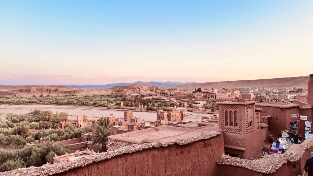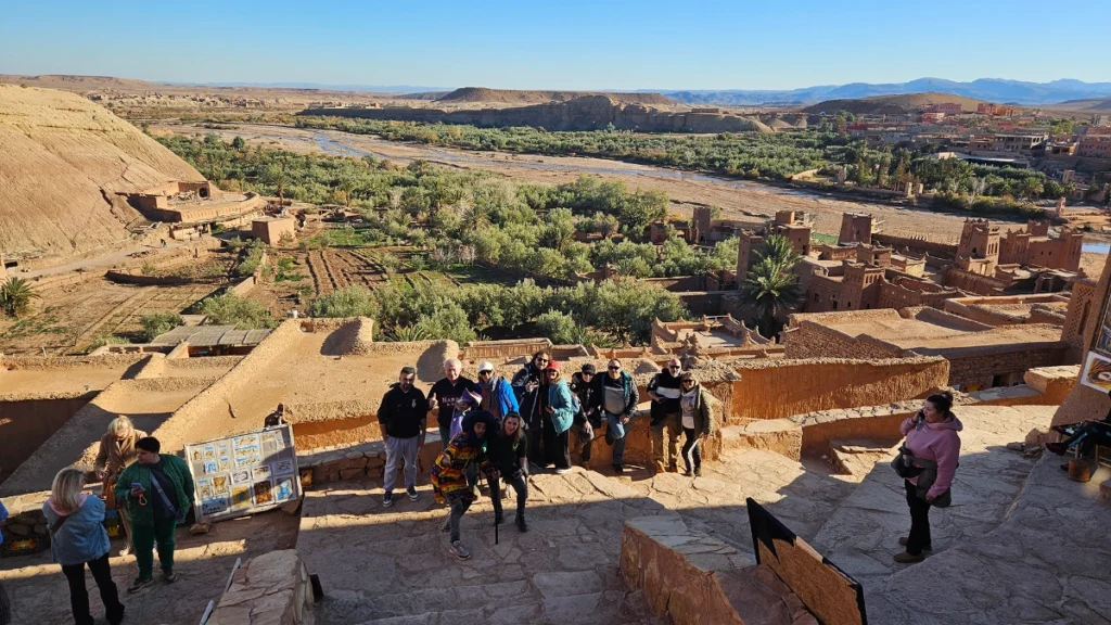 El contraste del verde, con los marrones de diferentes tonos y el cielo azul, mezclado con las edificaciones en adobe hacen de este valle algo muy especial.  Casi sin darnos cuenta tendremos frente a nosotros el gran Ksar de Ait Ben Haddou, patrimonio de la Humanidad. Una vez alojados en el hotel y vestidos de turista, nos pondremos manos a la obra y visitaremos el interior de esta increíble Kasbah.