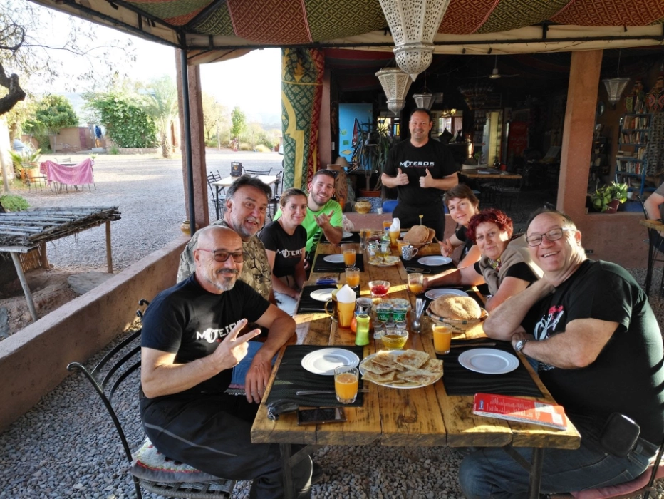 Después de un largo e intenso día de moto llegaremos derrotados al hotel, pero con una sonrisa de oreja a oreja. El cansancio desaparece pero los recuerdos perduran, además, hoy tendremos la oportunidad de cenar el mejor CousCous de todo Marruecos, dicho por todos los participantes de otras ediciones.