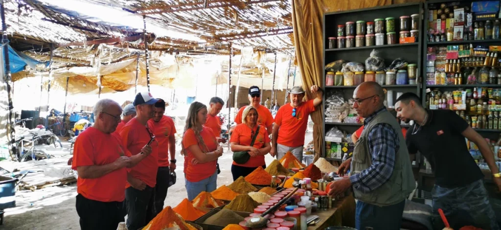 Después de desayunar pondremos rumbo a Rissani,  visita obligada  para ver su mercadillo, el más antiguo de todo Marruecos, lleno de  puestos de especias, verduras, carnicerías, pescaderías…. Además conoceremos antiguos oficios hoy en día casi perdidos, visitaremos el interior de una Kasbah, nos tomaremos el té en una casa típica y por supuesto, comeremos  Medfouna, la pizza Bereber.