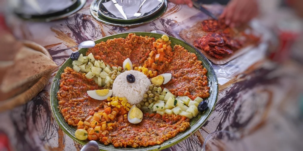 Y para terminar el día, harira, tajine de kefta con huevo, pan, aceitunas  ensalada…..una gran cena para un gran día.